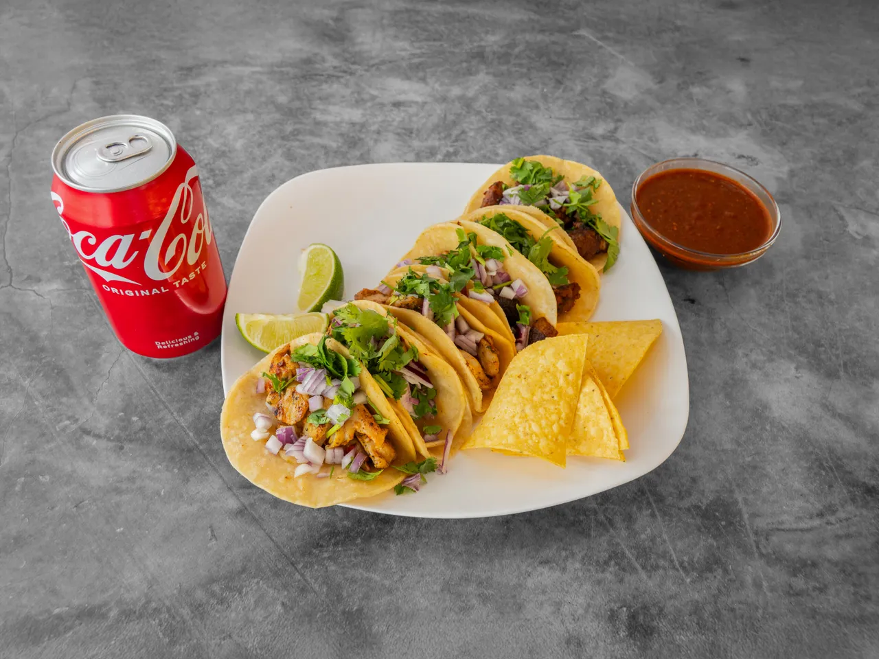6 street tacos and a soda.