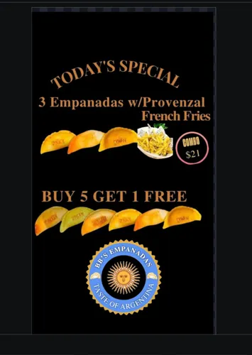 Each order comes with one Chimichurri Sauce Empanadas are made fresh and takes up to 15 minutes. Empanadas in the display warmer, are ready to go, but are in limited flavors.