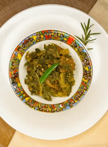 • A Curated Selection of Ethiopia’s Iconic Flavors • Slow-simmered doro wot, Ethiopian sautéed ribeye tibs, tender collard greens with ribeye, and fresh tomato & jalapeño salad. A flavorful journey rooted in Ethiopian culinary tradition. Served with fresh injera.