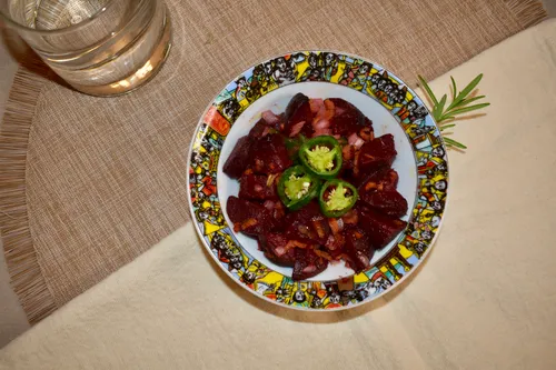 • Plant-Based Ethiopian Experience • A vibrant plant-forward tasting of spicy red lentils, mild yellow lentils, cabbage & carrots, green beans & carrots, and beet salad. Colorful, nourishing, and deeply flavorful. Served with fresh injera.